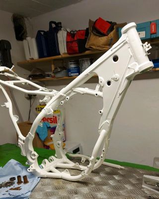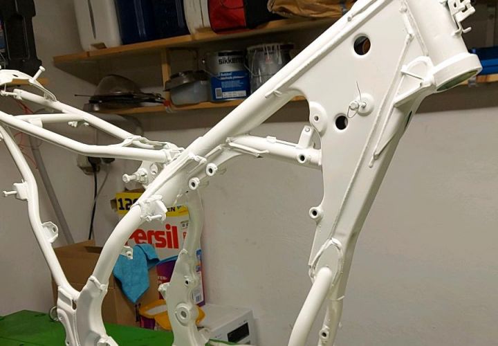 Pulverlackering av motorcykelramar